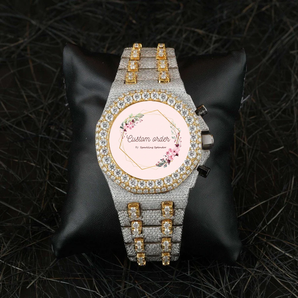 Full Iced Out Hip Hop Bling Fashion Automatic Analog Watch For Men Stainless Steel 2 Tone Gold Plated Luxury Moissanite Watch