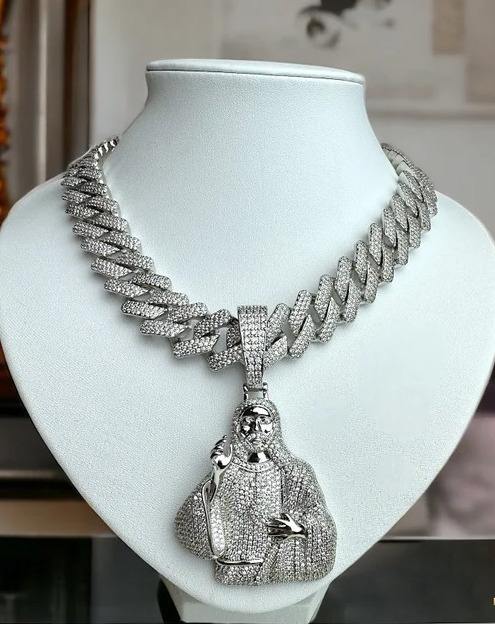 Full Iced Out Moissanite Diamond Jesus Pendant With Cuban Link Chain Prong Setting Best Hip Hop Style Necklace Best Gift for Men