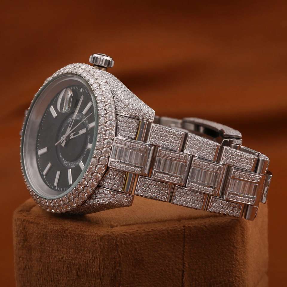Full Iced Out Moissanite Diamond Stainless Steel Wrist wear watch Designed for Trendy Fashion hip hop watch for Men
