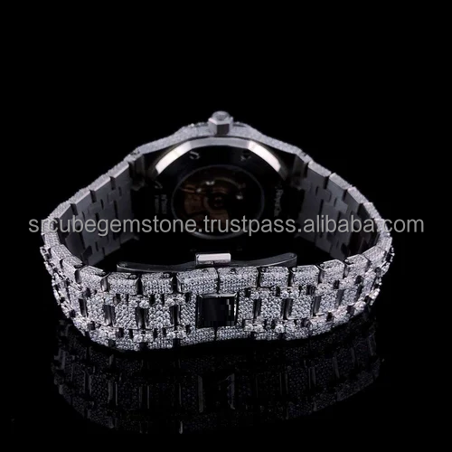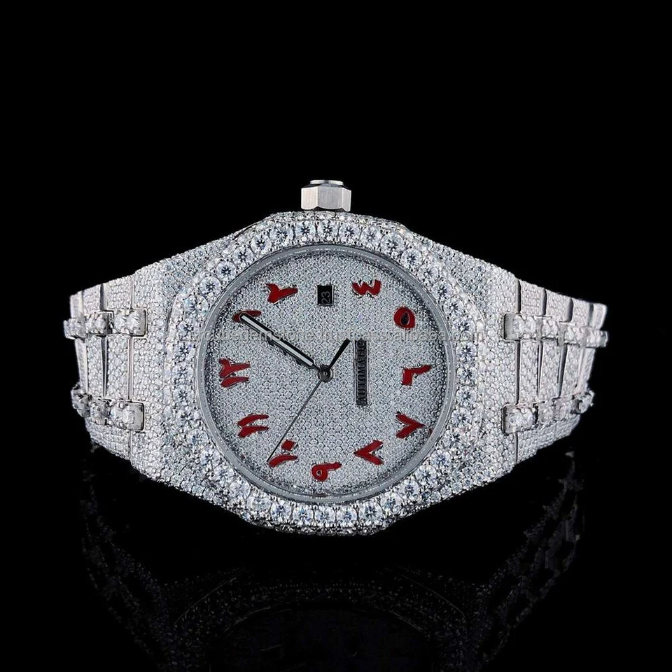 Full Iced Out Moissanite Diamond Stainless Steel White Gold Arabic Font Men Wrist Watch