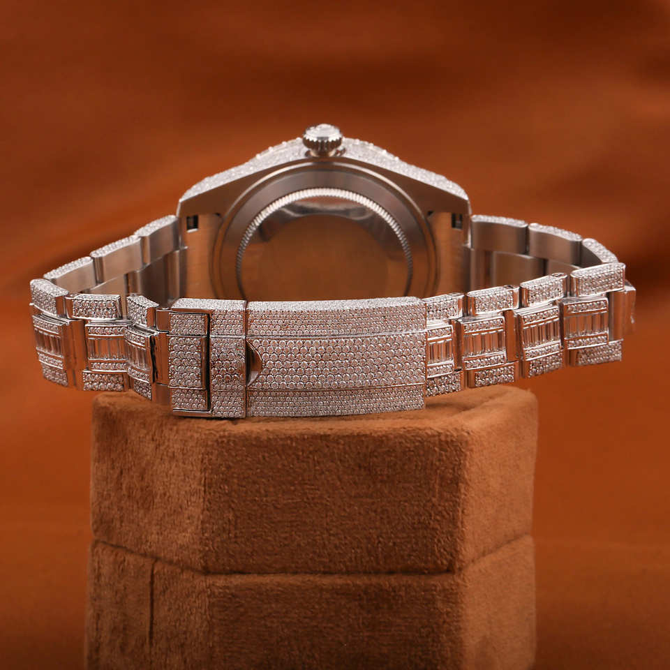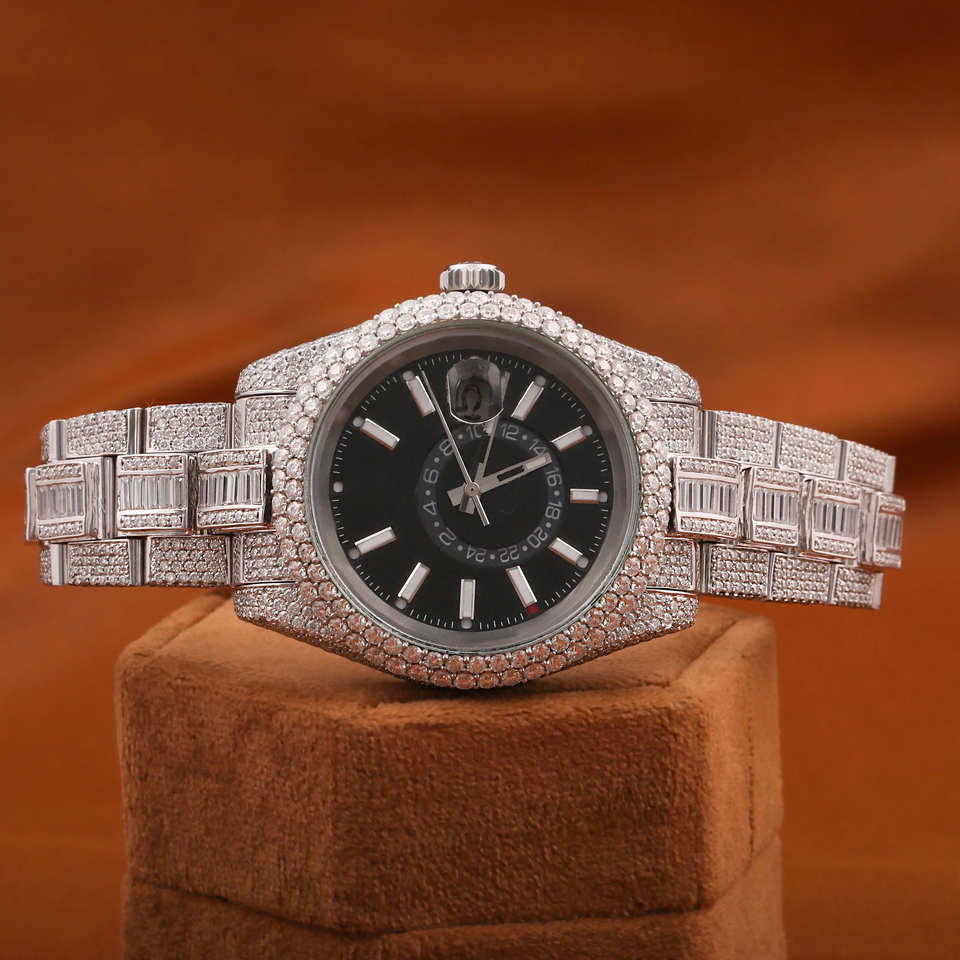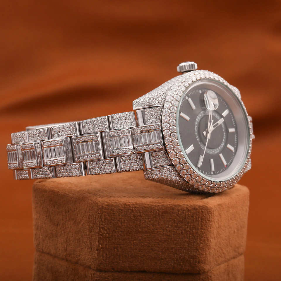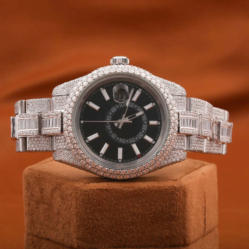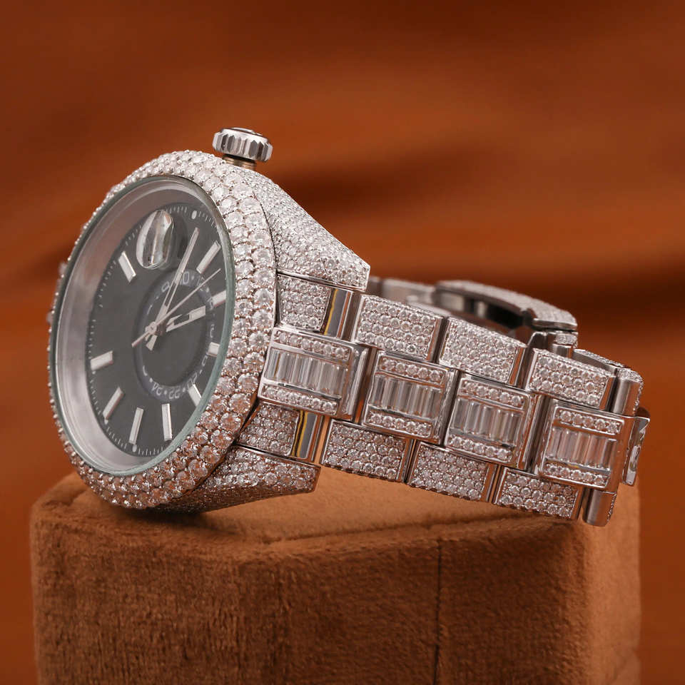 Full Iced Out New Luxury Original Customized Bust Down Black Dial Hip Hop Moissanite Diamond Wrist Watch For Unisex