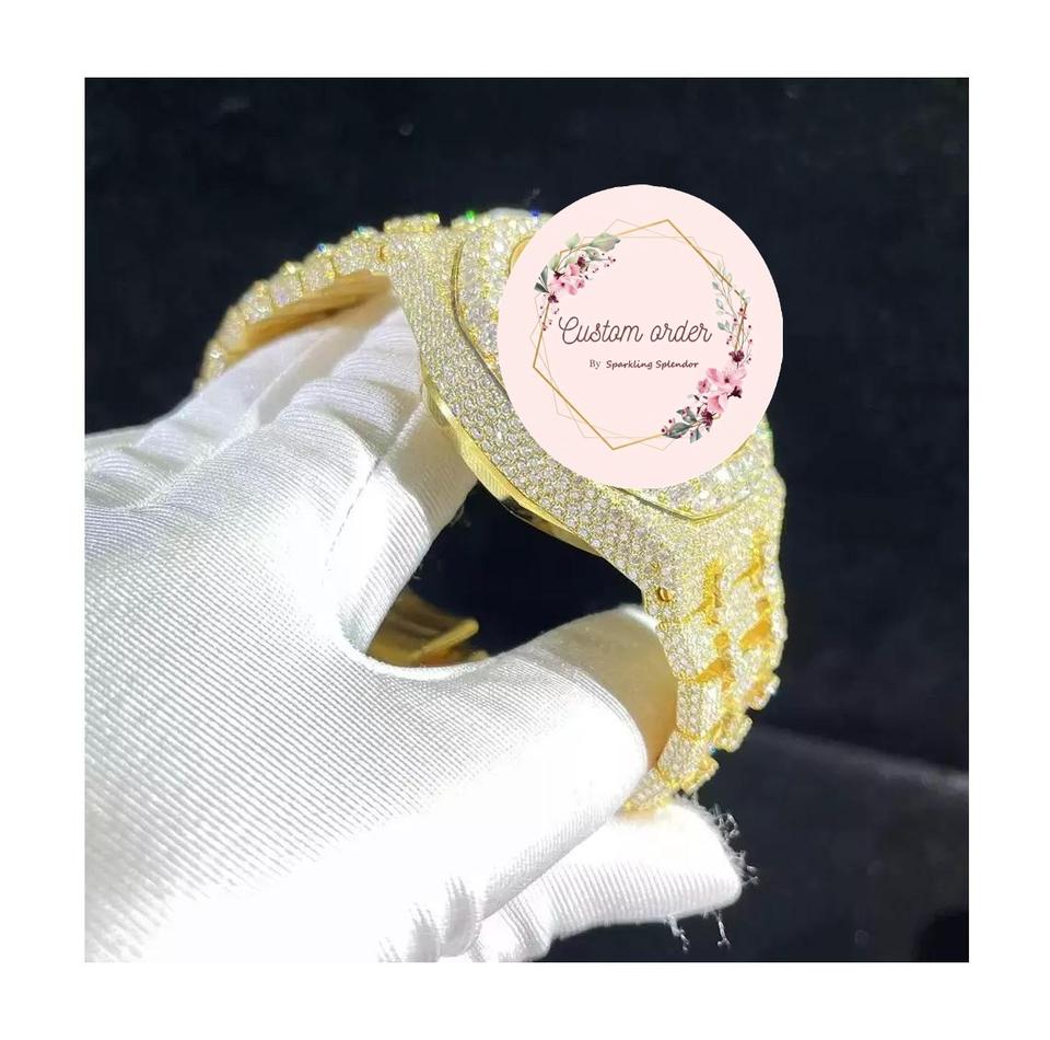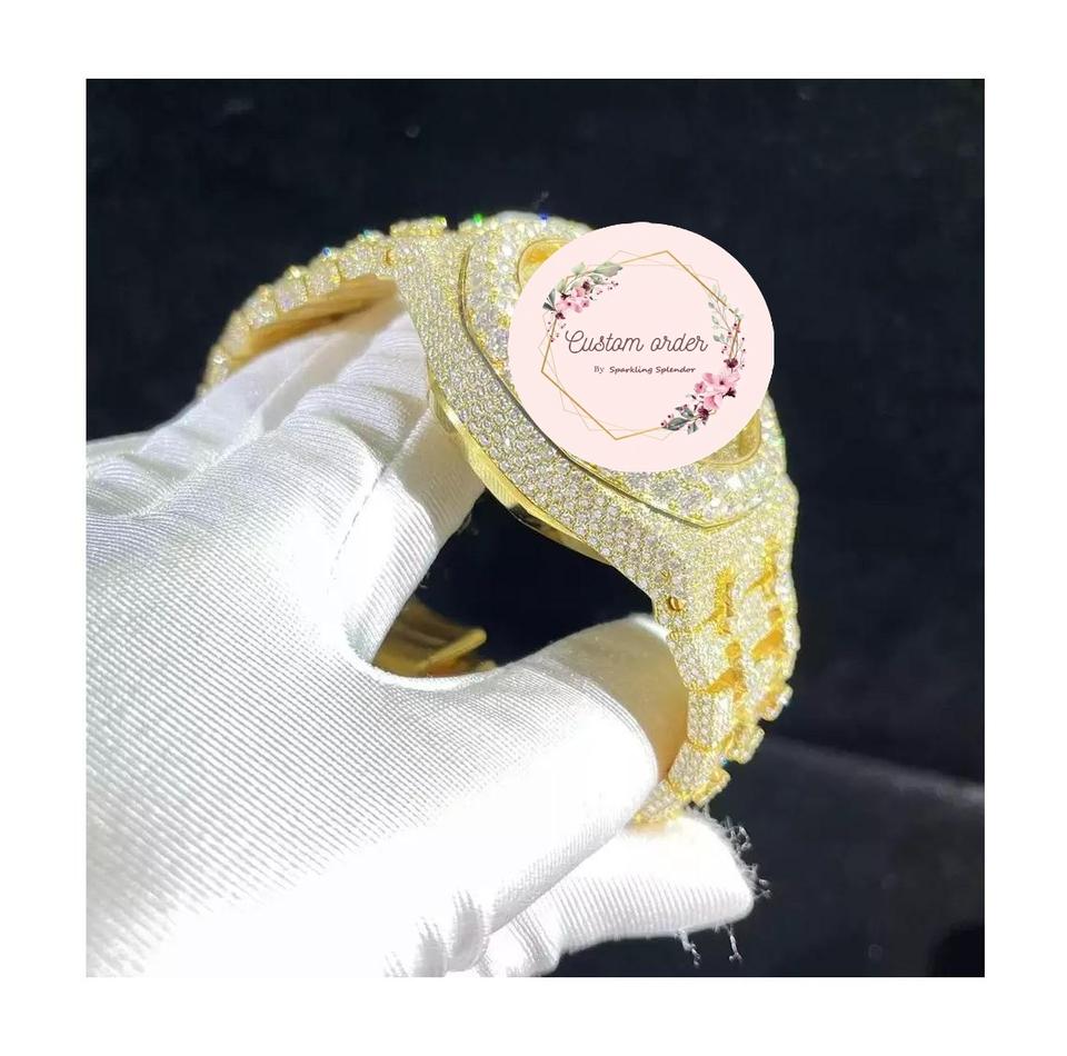 Full Iced VVS Moissanite Hip Hop Men's Watch Luxury Stainless Steel Two Tone Automatic Analog Movement Rapper Party Jewelry