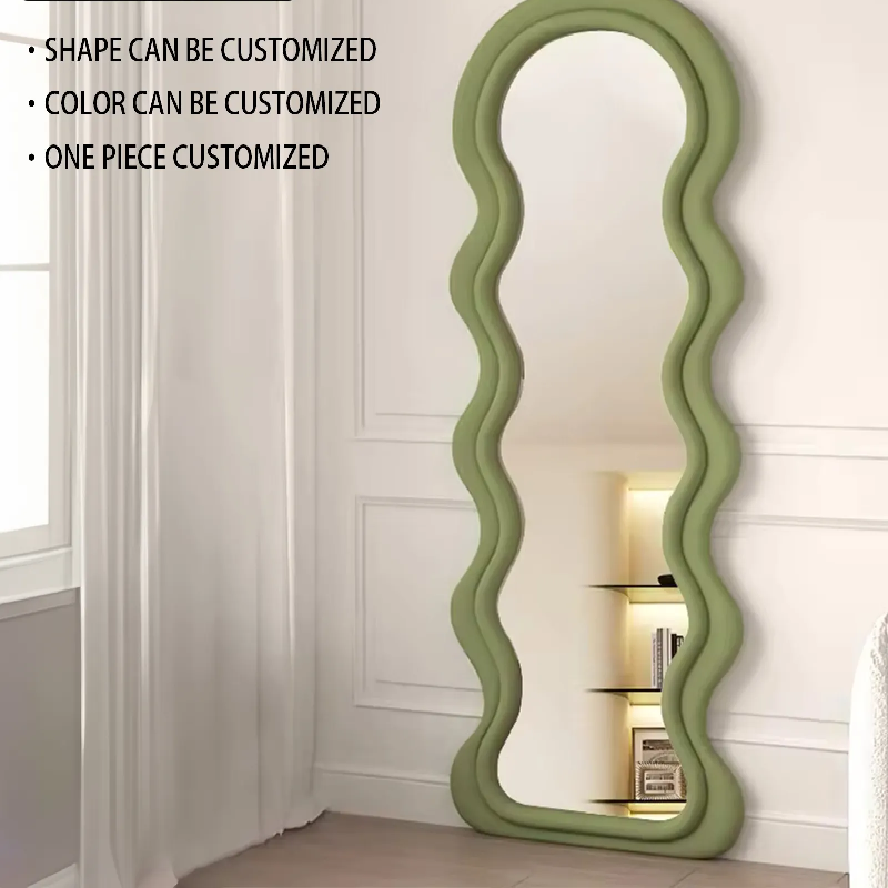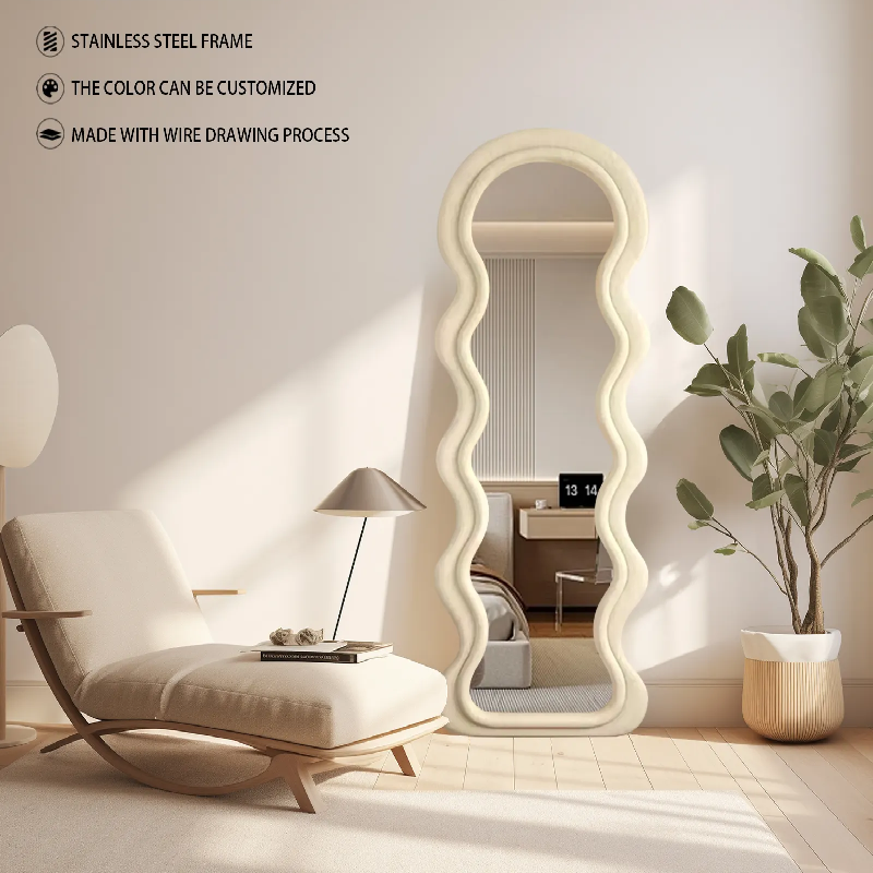 Full Length Mirror Floor Standing Mirror Modern Living Room Furniture Decorative Wavy Shape Irregular Mirror