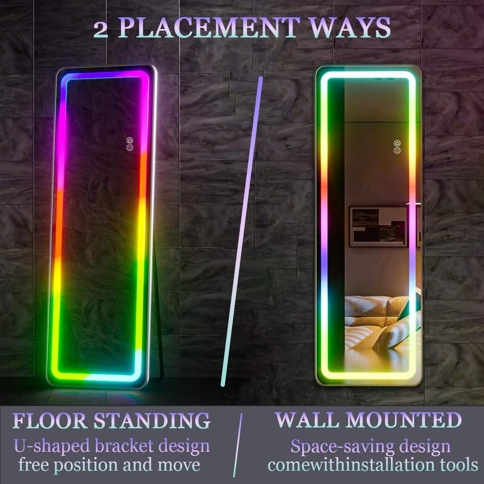 Full Length Mirror with LED Light Touch Switch Dimmable 7-Color Lighting Wall-Mounted & Standing Salon Villa Bedroom Mirror