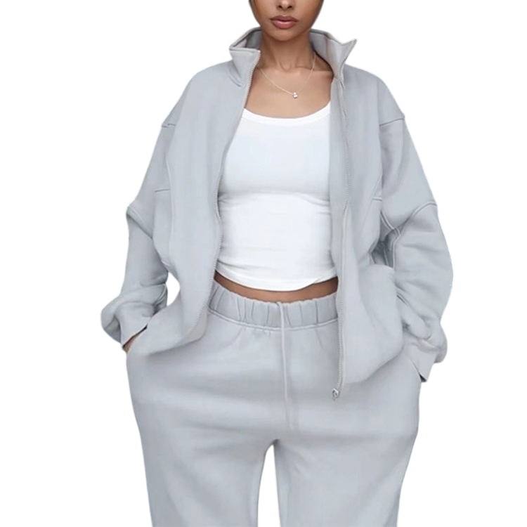Full-Length Women Knitted Spandex Cotton Set Long Sleeve Casual Lounge & Activewear Outfit Comfortable Hoodies Sweatshirt