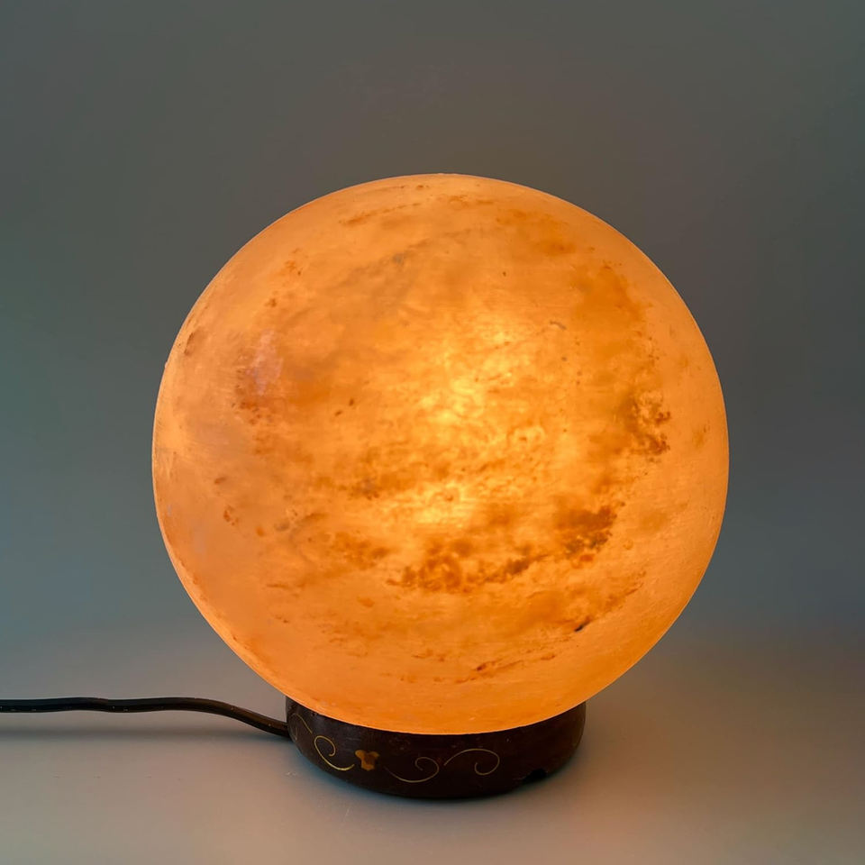 Full Moon Natural Himalayan Moon Salt Lamp with Carved Wooden Base Eco-Friendly Love Style Decoration Himalayan Moon Salt Lamp