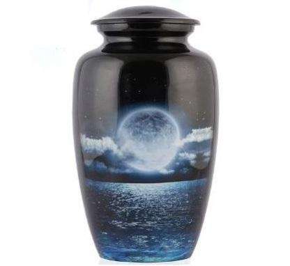 Full Moon Ocean Waves Metal Cremation Urn with Dramatic Night Seascape Artwork for Memorial Ashes