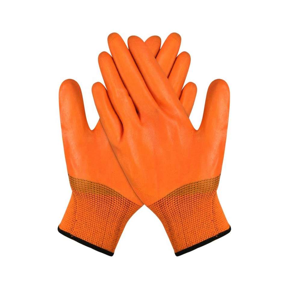 Full PVC-Coated Polyester Gloves Waterproof Oil Resistant Slightly Textured Grip Elastic Wrist For Construction Maintenance Work