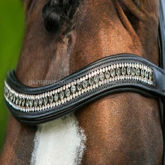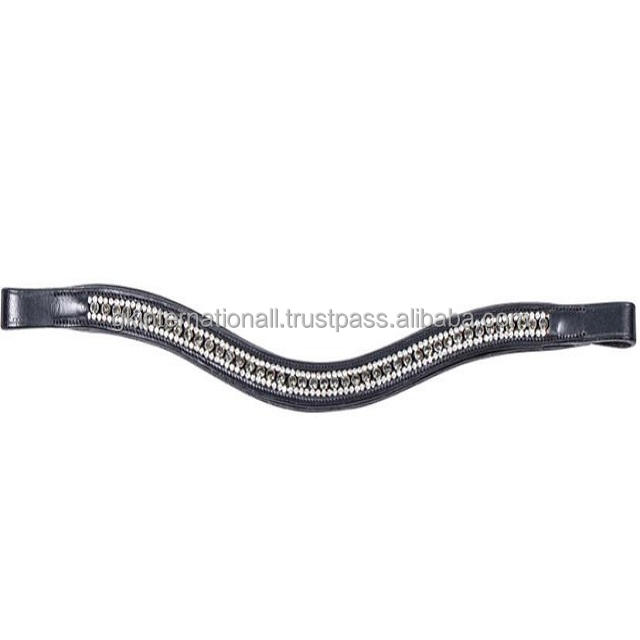 Full Padded English Leather Curved Brow Band with Rim Set Crystals Custom Design for Dressage Bridle in All Sizes and Colors