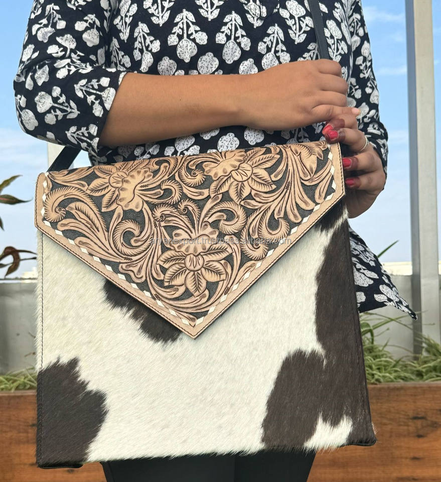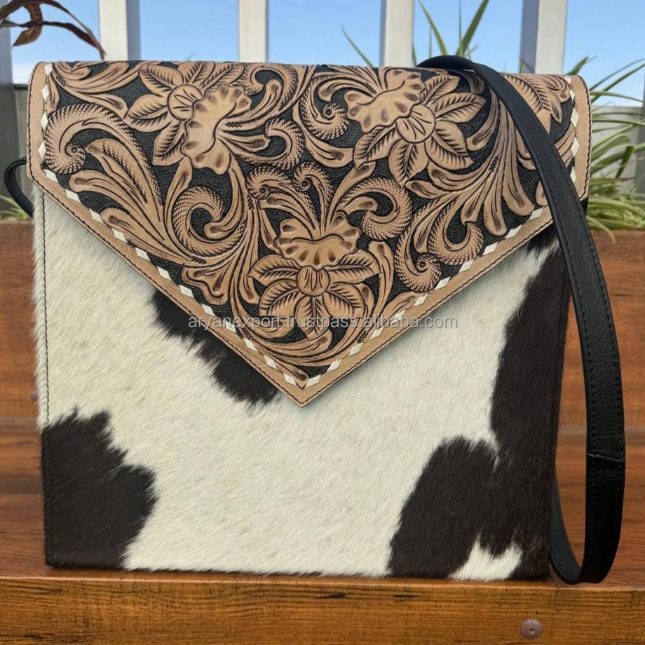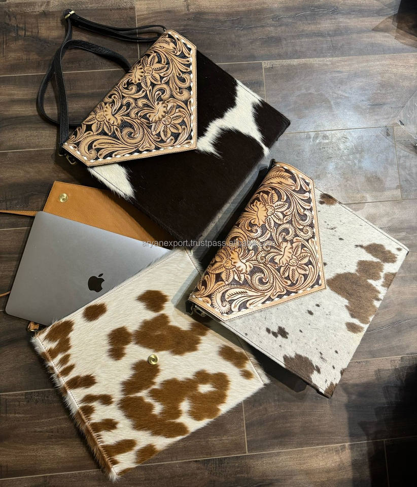 Full Protection Hand Tooled Laptop Sleeve 13.3 14 15.6 Inch Shoulder Bag Cowhide Business Laptop Sleeve Case Travel-Style Office