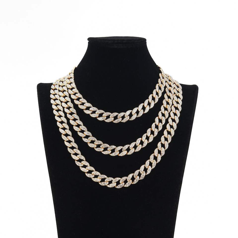 Full Rhinestone Miami Men's Big Gold Chain, Hip Hop Cuban Chain Necklace Accessories Jewelry Tanjing Fashion Lijing Necklace