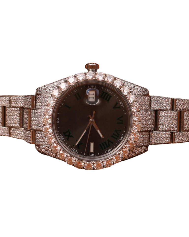 Full Rose Iced Out Moissanite Diamond Wrist watch Customized Brown Dial Hip-hop Automatic Watch For Men's Birthday Gift