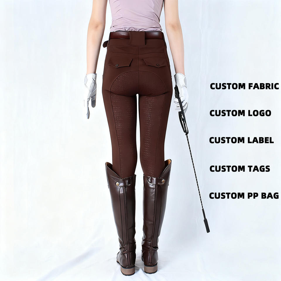 Full Seat Silicone Legging High Waist Horse Riding Clothing Anti Slip Brown Pockets Equestrian Pants Women Breeches Equestrian