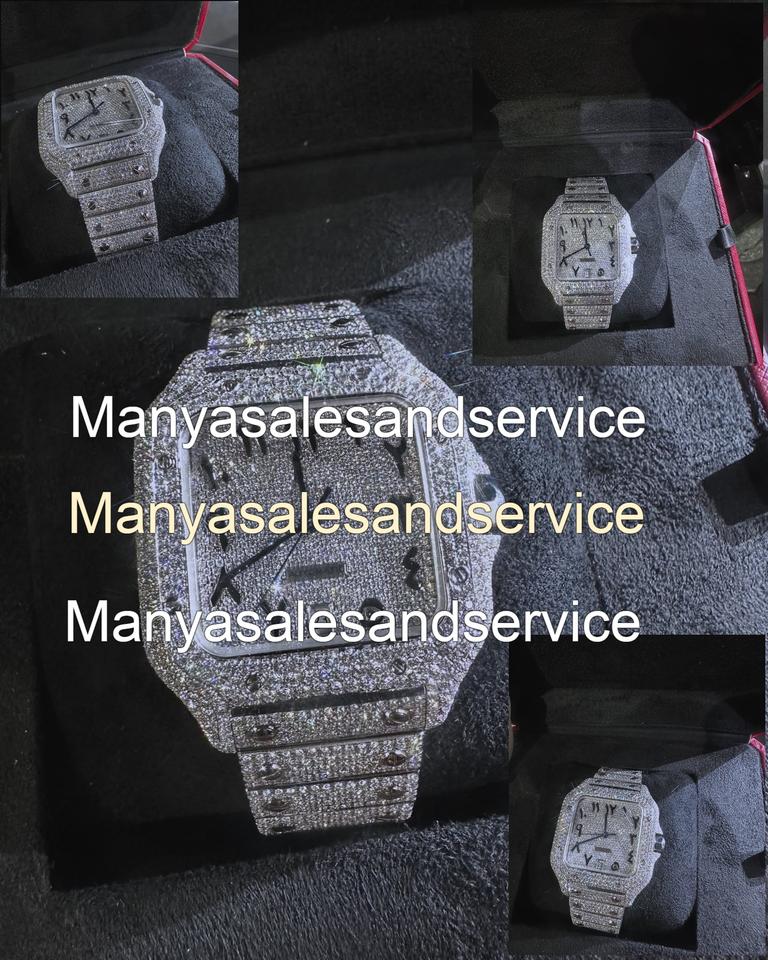 Full Silver Diamond Glass Square Watch with Moissanite Cut Men's 10 Bar Water Resistant Bracelet Clasp Custom Made Luxury Black