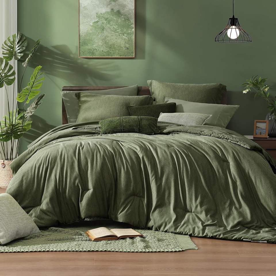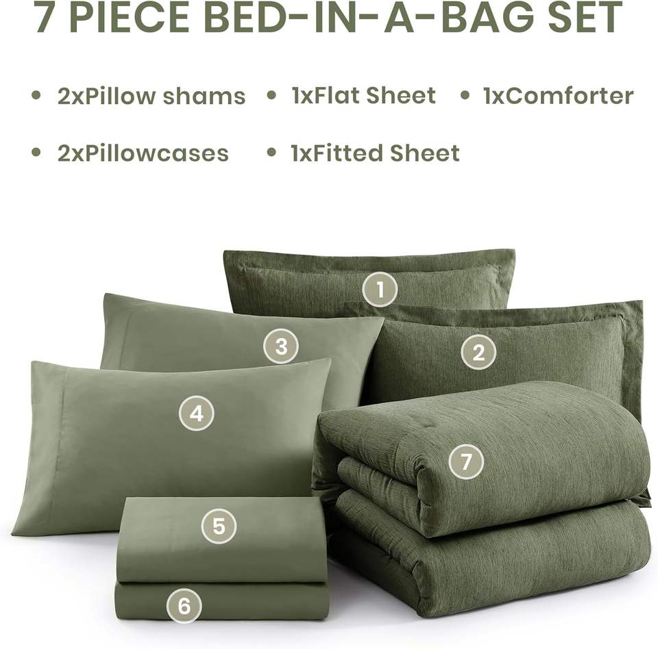 Full Size Comforter Set, Olive Green Bedding Comforter Sets Full 7 Pieces with Comforter, Sheets, Pillowcases & Shams