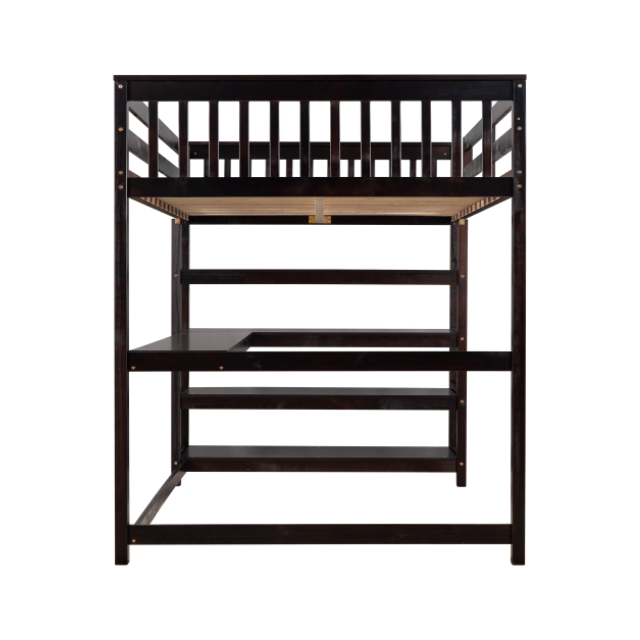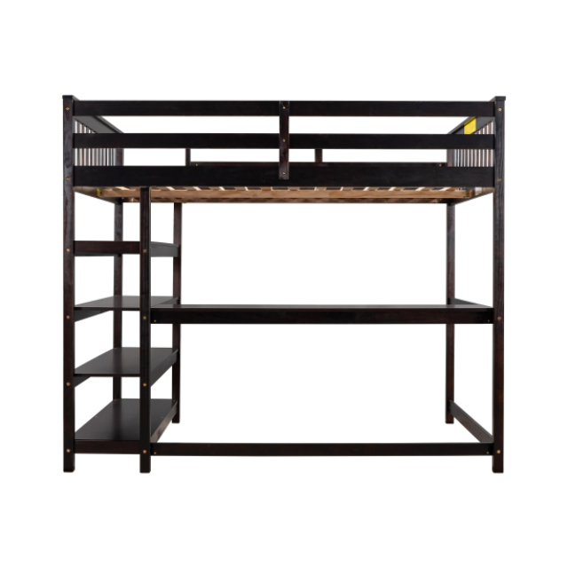 Full Size Loft Bed with Storage Shelves and Under Bed Desk, Espresso for Kids Manufacturer From Vietnam