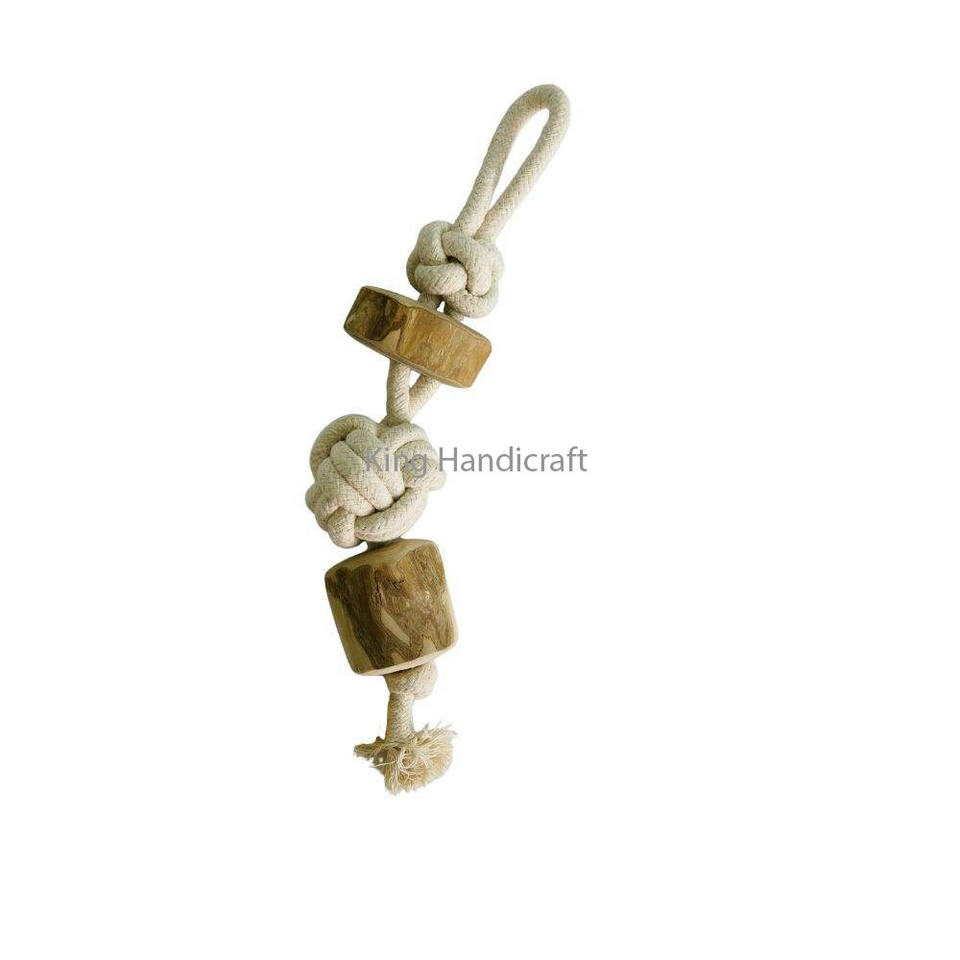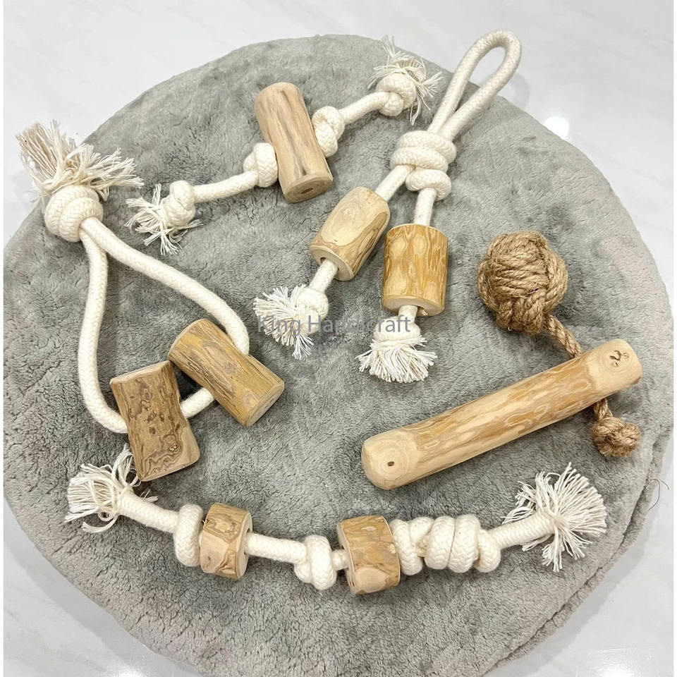 Full-Size Twins Rope Bone Coffee Wood Chew Toy for Dogs with White Cotton & Coir Hemp Rope from Vietnam