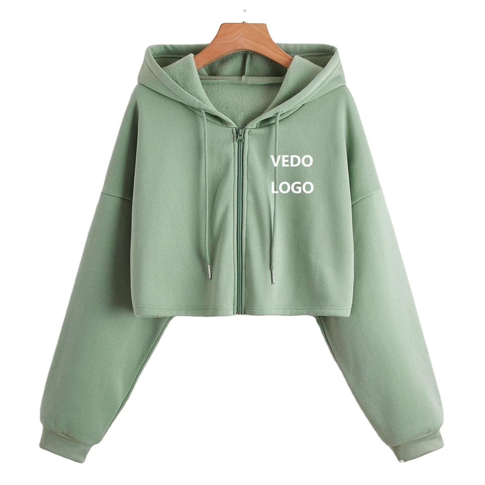 Full Sleeve Hoodies Crop Top Autumn Hoodie Zip up Women's Custom Color Crop Top Hoodies