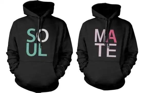Full Sleeve Winter Animal Printed Front Logo Wholesale Custom Matching Couple Outfits His Her Hooded Sweatshirts Long 100%