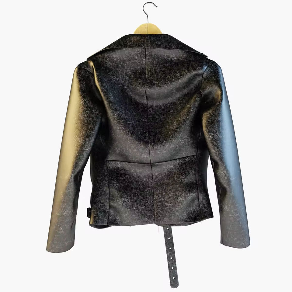 Full Sleeves Leather Jacket Without Hood Fabric Leather Lining Tafetta, Zipper Closure Black Color Beautiful Statement Piece