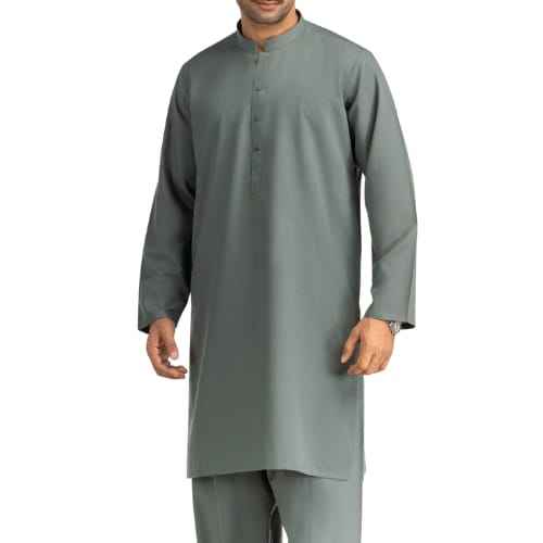 Full Sleeves Plus Size Casual Thermal Breathable Men Shalwar Kameez Plain Dyed Polyester/Cotton by QJ IMPEX