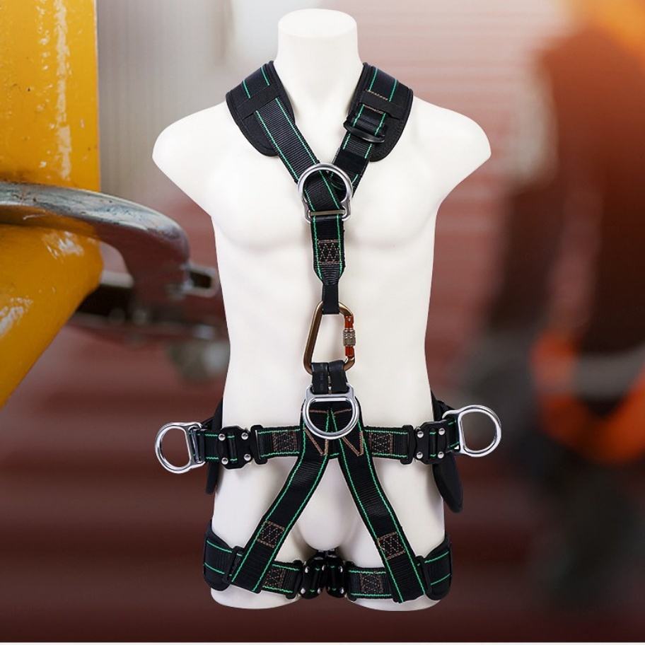Full-body Electrical Harness Five-point Aerial Work Fitted Belt Black With Side Green Line Polyester Fall