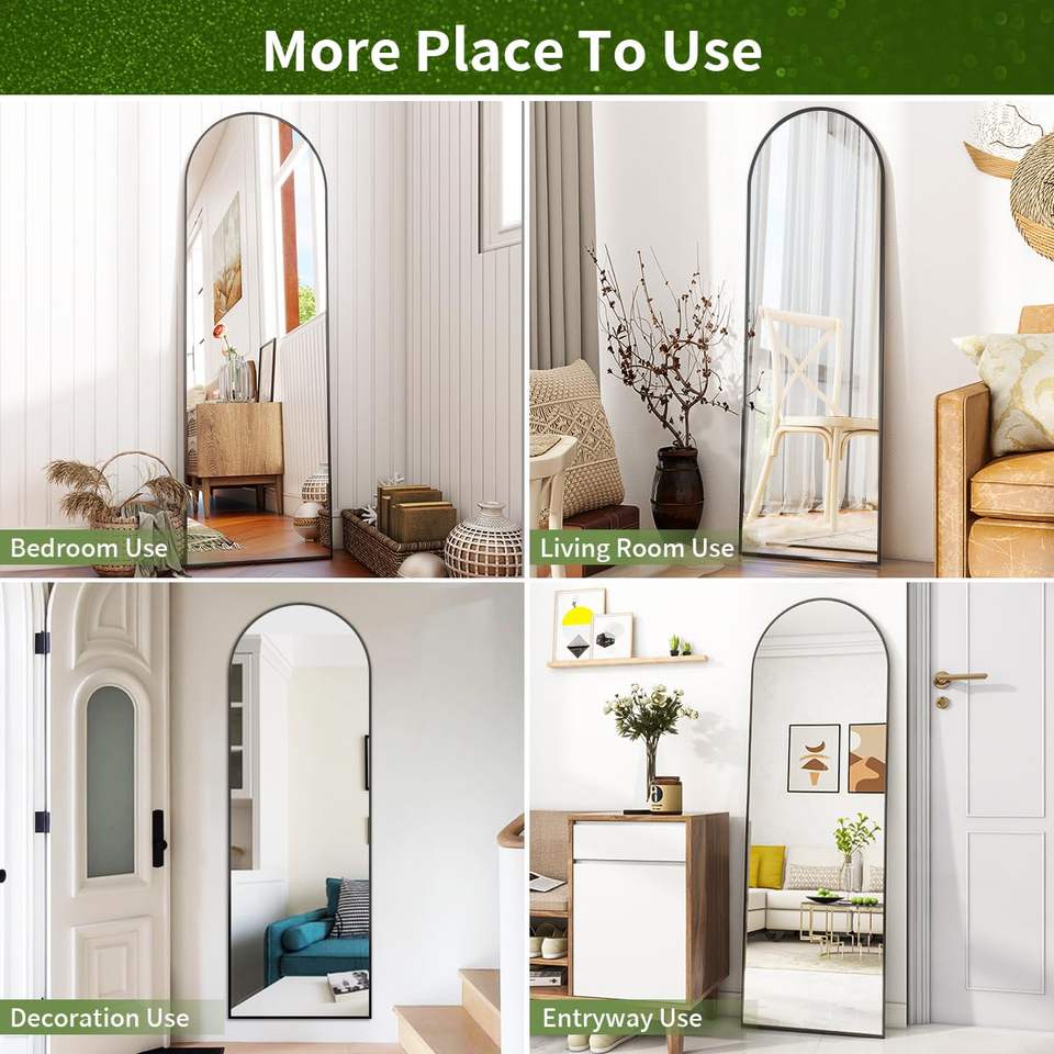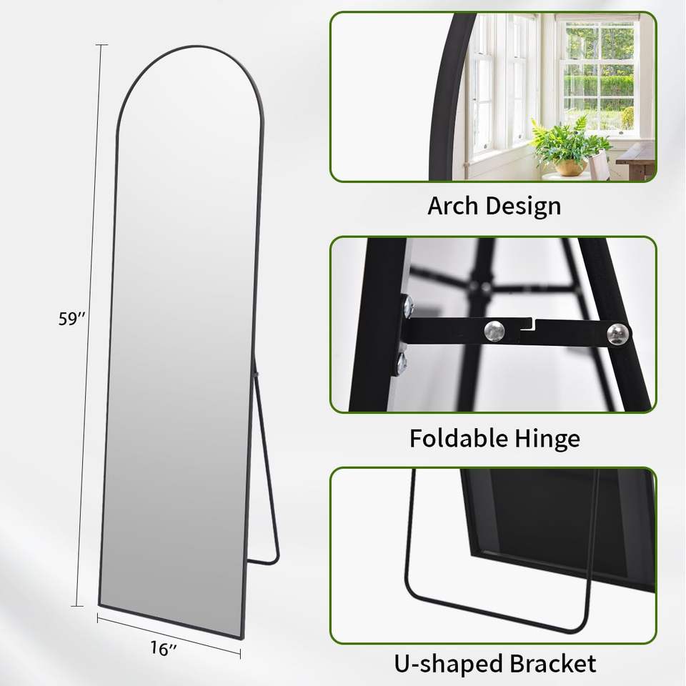 Full-length Floor Mirror with Aluminum Alloy Frame, Suitable for Bedroom and Dressing Room, Black