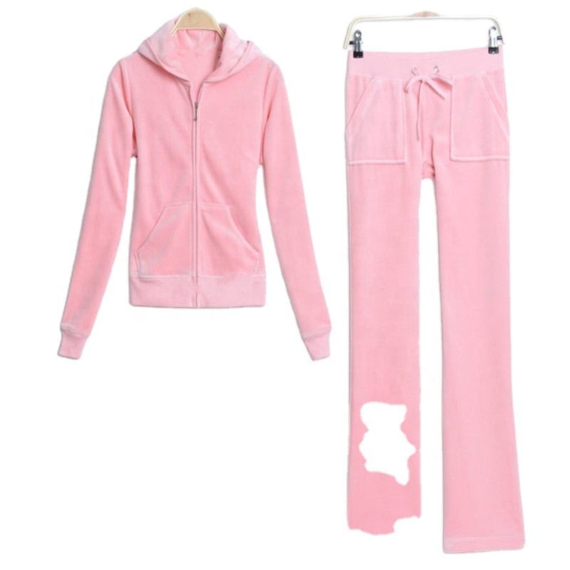 Full zip up plain velvet women's velour jogger set pink suede track suit women's gym tracksuit
