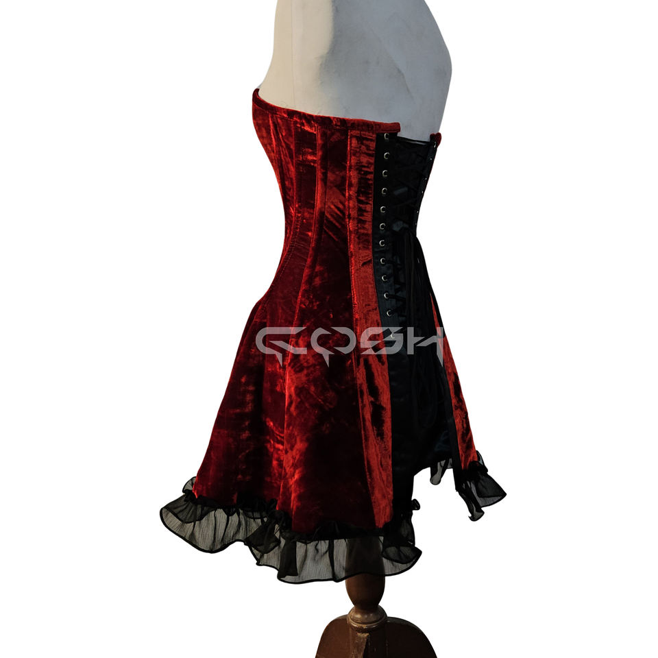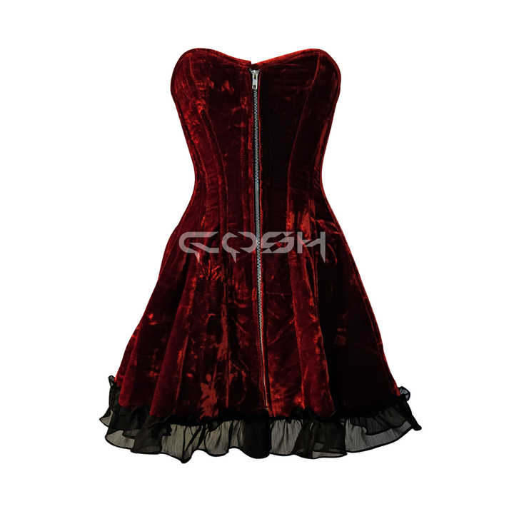 Fullbust Red Velvet Prom Dress with Frill Simple Decoration Lace Straight Silhouette Natural Waistline From Pakistan Supplier
