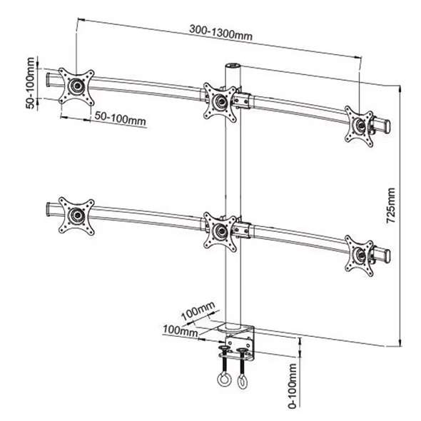 Fully Adjustable Six Arm Monitor Desk Mount With Hexa Design For Immersive Viewing In Offices And Command Centers From India