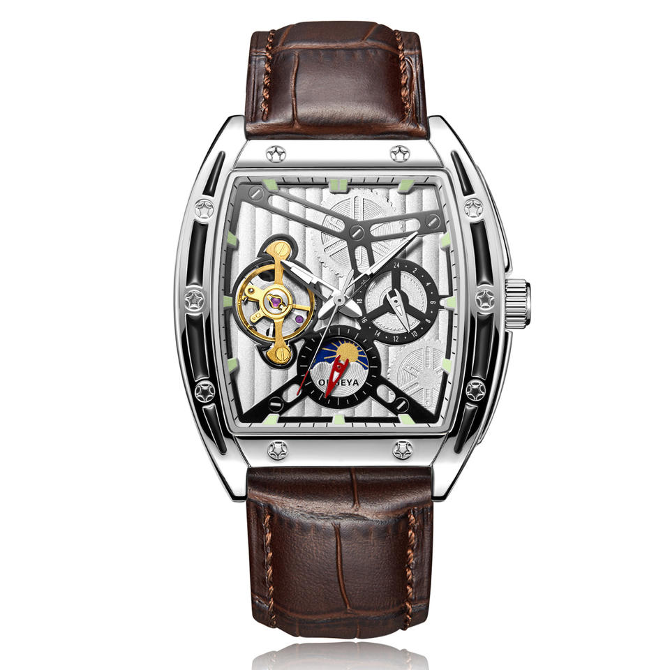 Fully Automatic Mechanical Watch Stainless Steel case Shape Openwork Design Luminous Display Power Reserve Hip Hop 100 bar Water