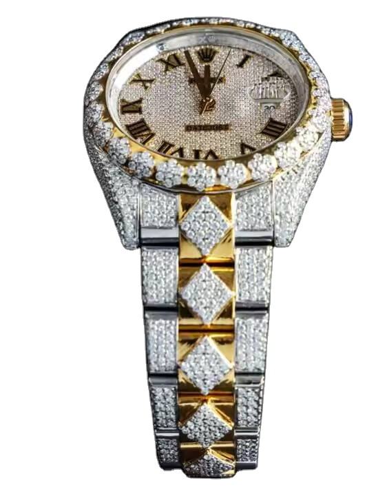 Fully Customize Luxury Diver Moissanite Diamond Iced Out Watch Men Stainless Steel Bezel Gold Vvs Diamond