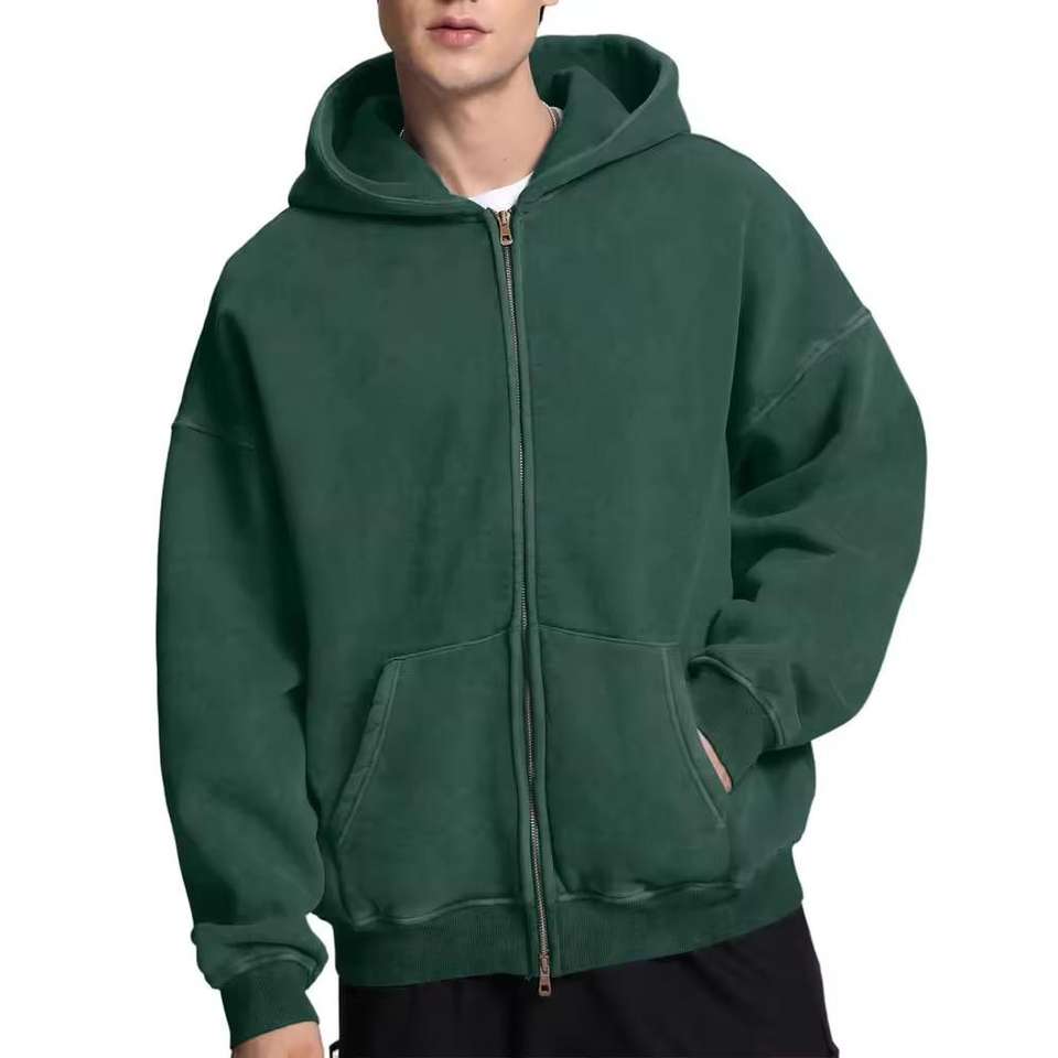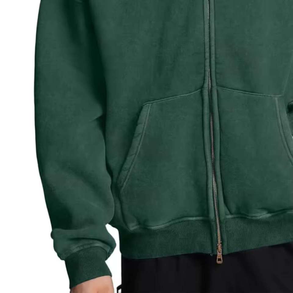Fully Customized Rhinestone Acid Wash Hoodies Men Embroidery Patch logo French Terry Streetwear Vintage Distressed Zip up Hoodie