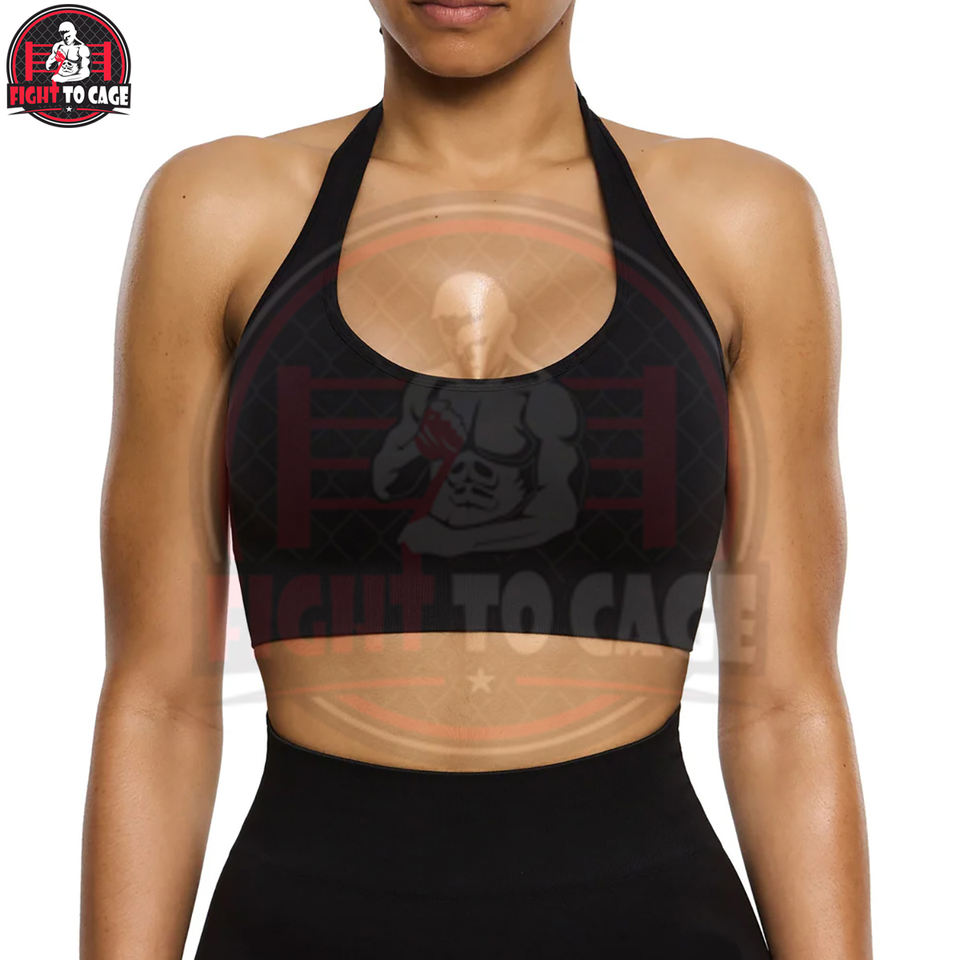 Fully Customized Solid Black Color Best Supplier In Reasonable Price Comfortable Unique Design Simple Halter Neck Sports Bra