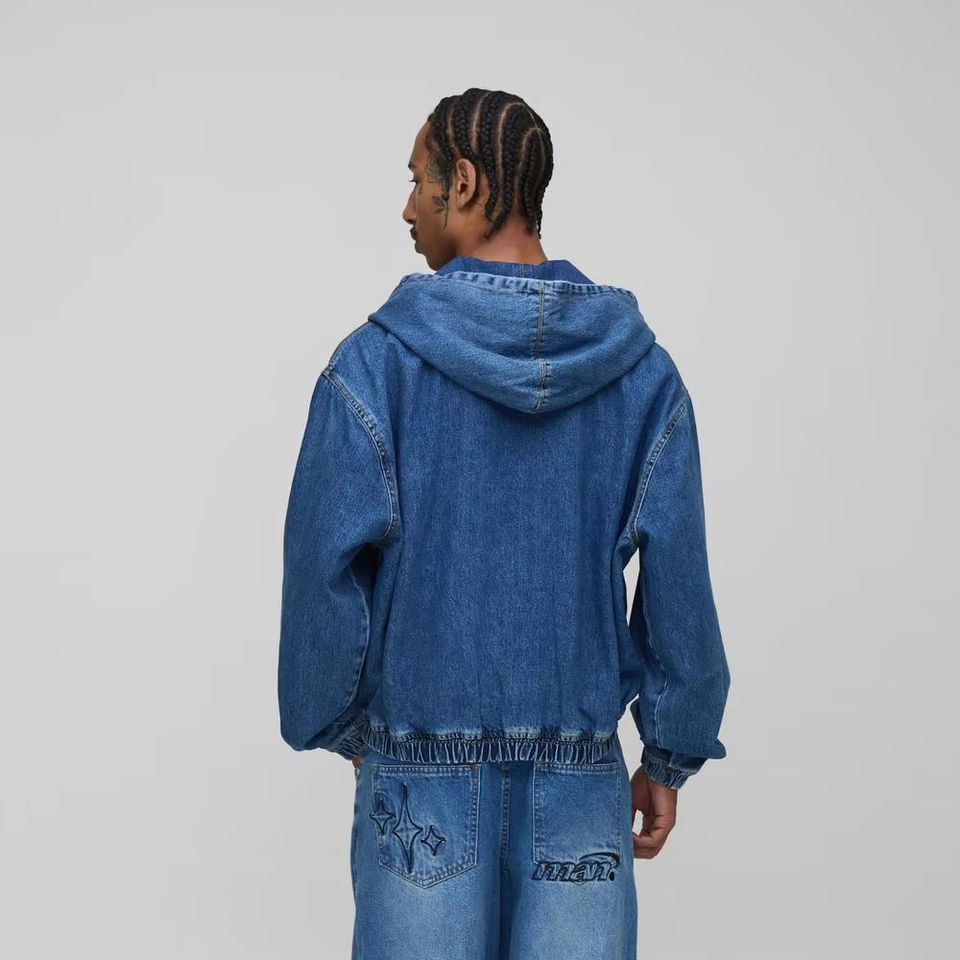 Fully Denim Original Color High Quality Demand Wholesale Custom Washed Denim Jacket Crop Bottom Plus Size Denim Jacket Sale