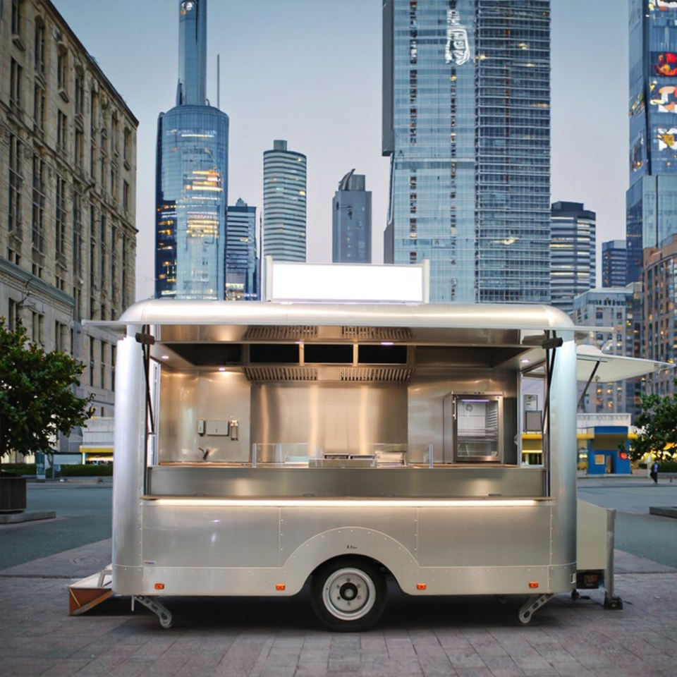 Fully Equipped Towing-Ready Stainless Steel Mobile Kitchen Food Truck for Snacks Ice Cream Hot Dogs Fast Food Winery Retail