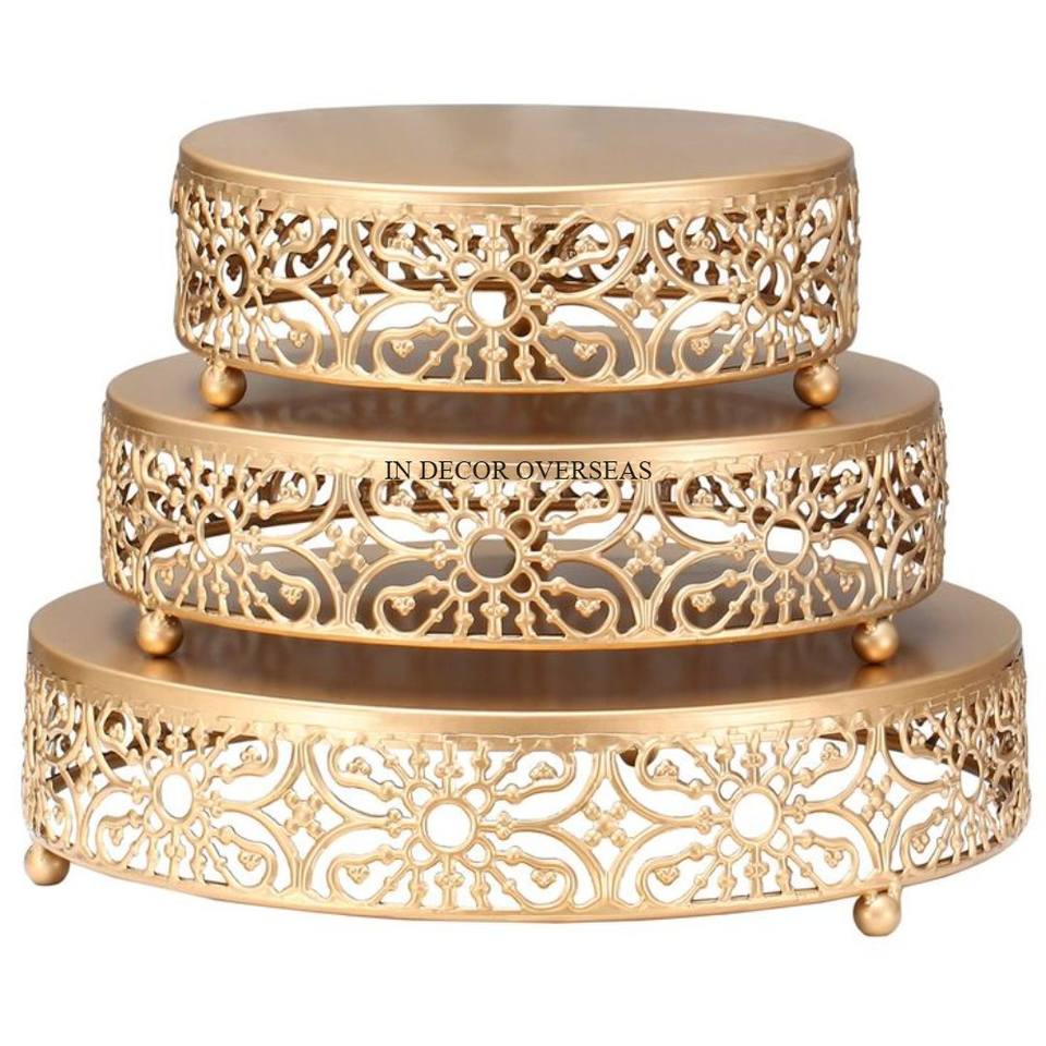 Fully High Grade Gold Plated Flower Designer Premium Quality Metal 3 Tier Cake Stand Beautiful Look Wedding & Parties Supplies