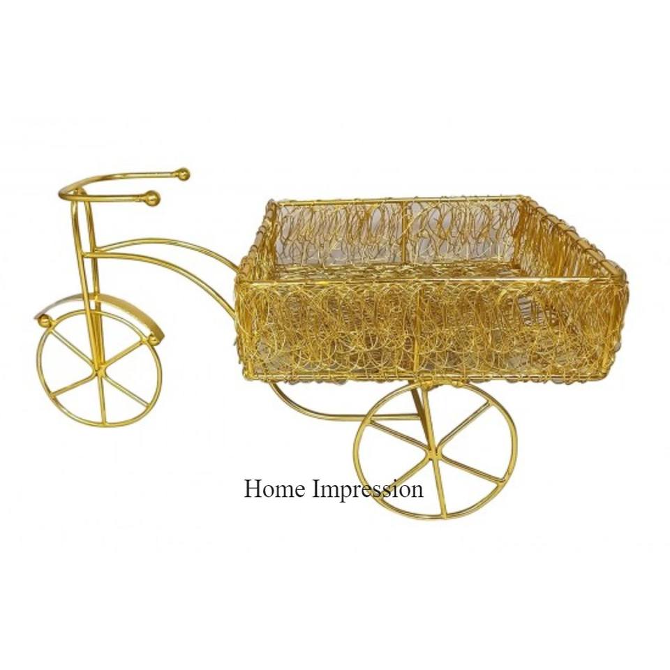 Fully High Grade Gold Plated Metal Wired Made Attractive Look With Modern Leaves Designer Handle Hanging Gift Hampers Basket