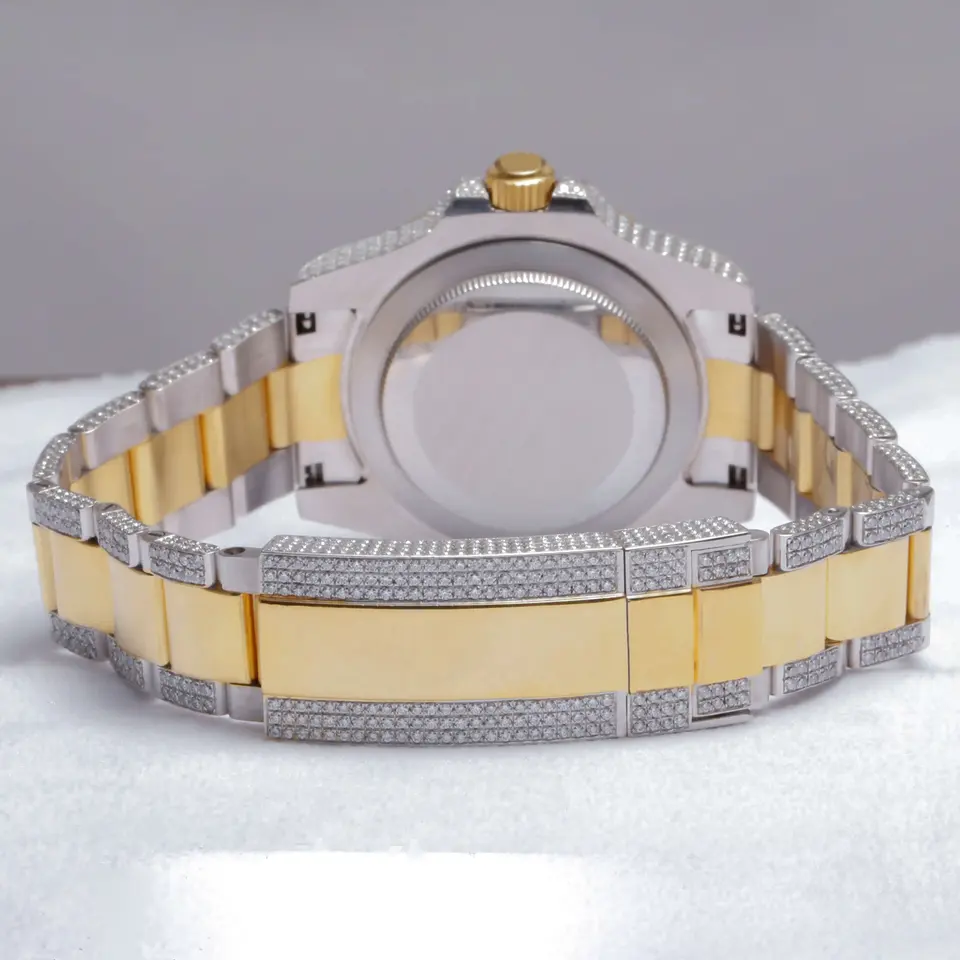 Fully Iced Luxurious Unisex Wrist Watch Coloured Rubber Analog Coin VVS Moissanite Bling Quartz Movement Steel Case Position