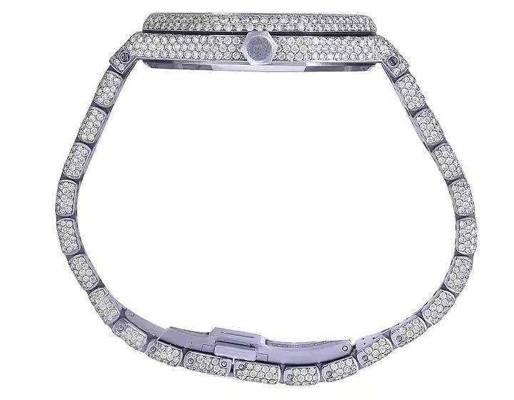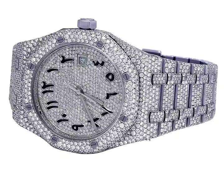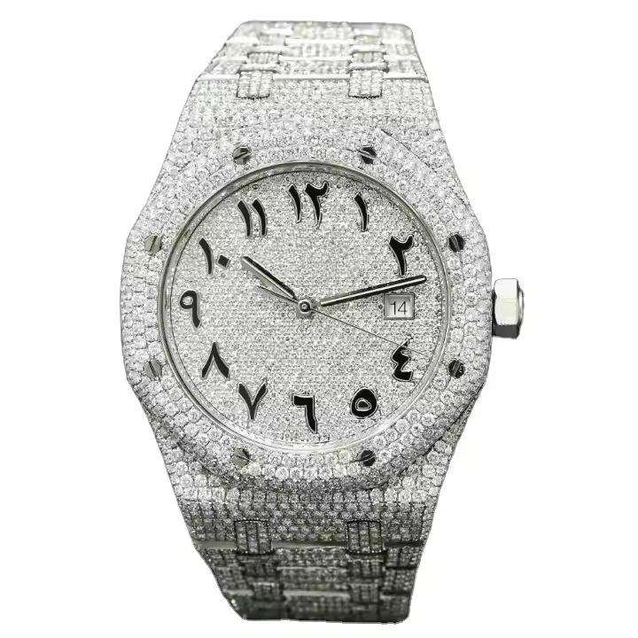 Fully Iced Moissanite Diamonds Watch Hip Hop Style Arabic Analog Dial Luxury Stainless Steel Band Premium Watch