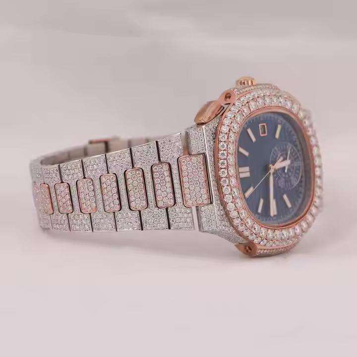 Fully Iced Out Custom Design Men's Hip Hop Two Tone Stainless Steel Moissanite Diamond Quartz Watch for Men and Women