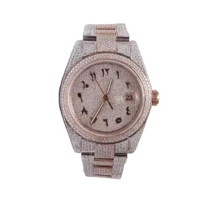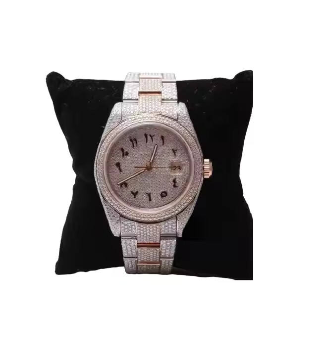 Fully Iced Out Men's Fashion Round Dial Hip Hop Moissanite Diamond Studded Watch Wrist Iced Out Watches