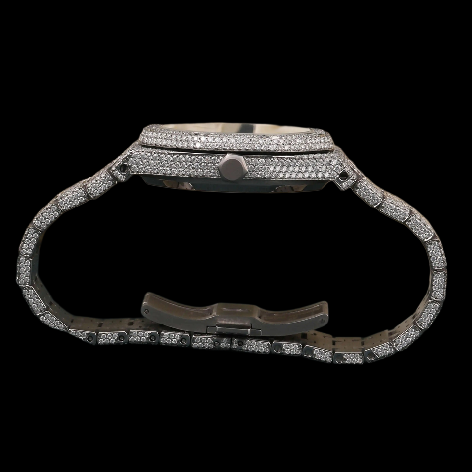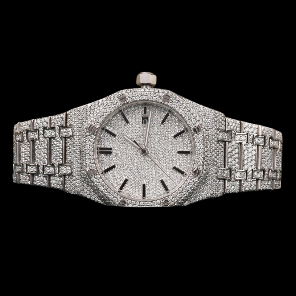 Fully Iced Out Moissanite Diamond Round Shaped Dial Auto Date Features Moissanite Diamond Fully Iced Out Hip Hop Watch