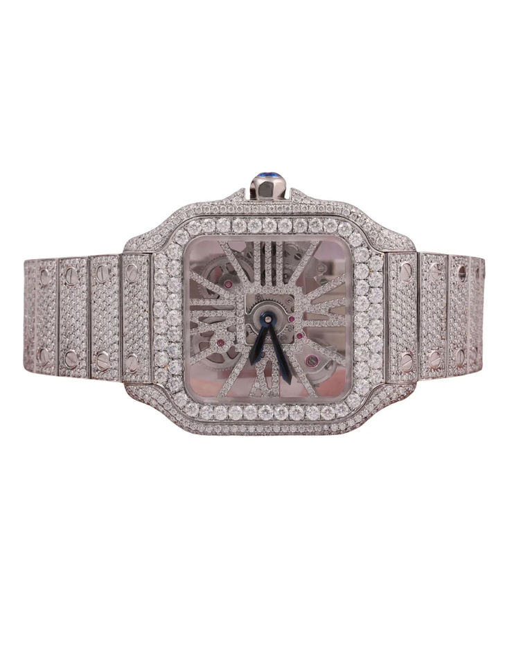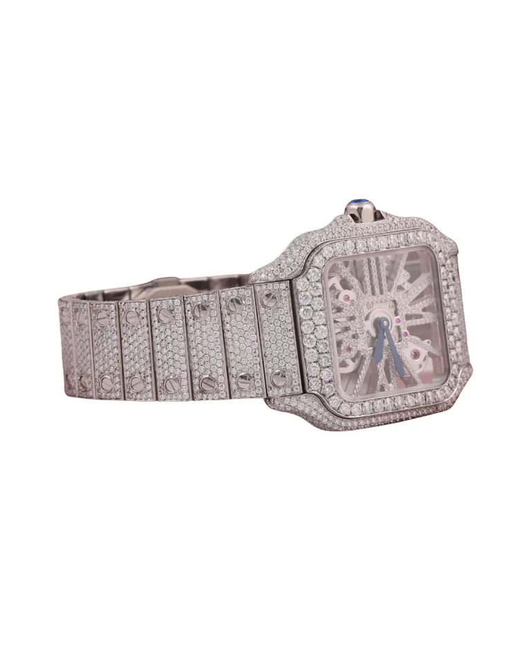 Fully Iced Out Moissanite Watch Stainless Steel Luxurious Watch Vintage White Dial Hip Hop Classic Square Watch in White Gold