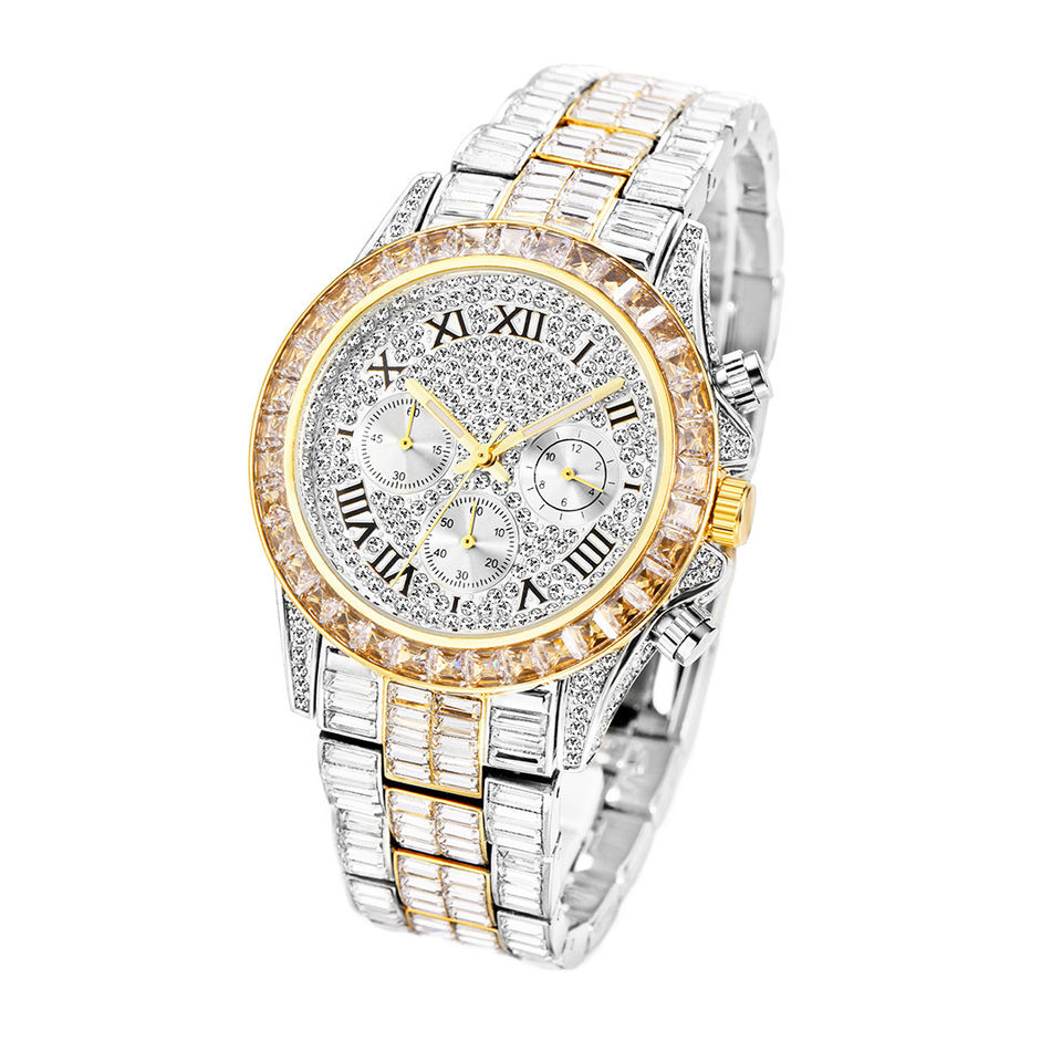 Fully Iced Out VVS Moissanite Diamond Stainless Steel Customized Design Round Dial Hip Hop Watches For Men
