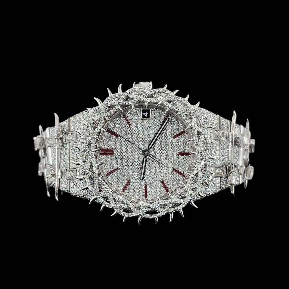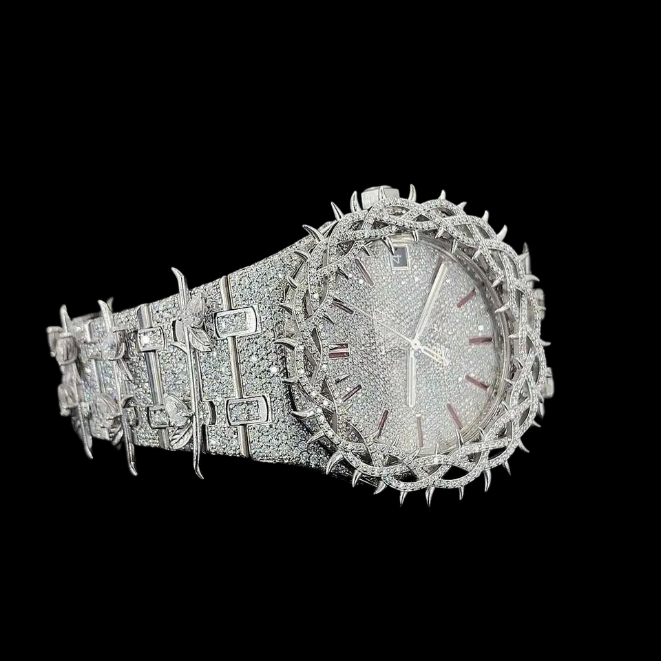 Fully Iced Out White Gold Branded Watch with vvs Moissanite Diamond Hip Hop Style Man's Jewelry Design Trendy Accessories