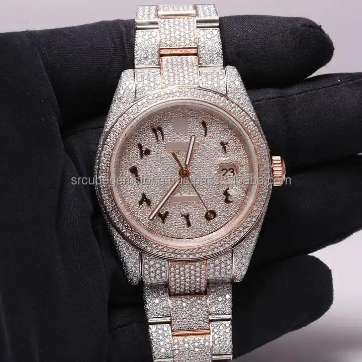 Fully Iced VVS Clarity Lab Grown Diamond Studded Smart Watch With Pass Tester Antique Stainless Steel Mechanical Watch for Men