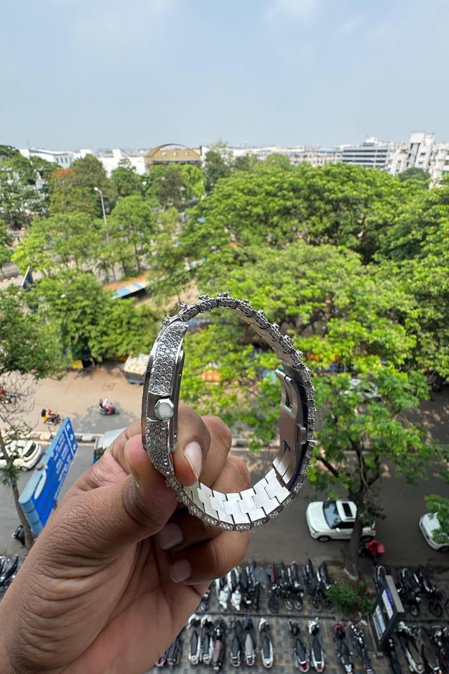 Fully Iced out Moissanite Automatic Watch for Men White Gold Band Hip Hop Stainless Steel Watch Rapper Party Gift For Friends