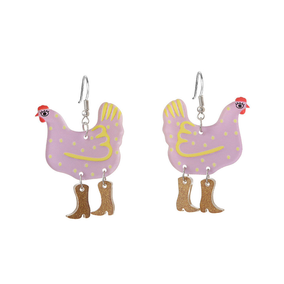Fully Managed New Eco-friendly Acrylic Earrings - European and American Cartoon Colored Hen Shaped Earrings for Wholesale
