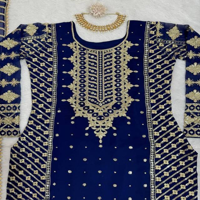 Fully Stitched Faux Georgette Ethnic Suit Thread and Sequence Work on Top and Pant with Matching Dupatta